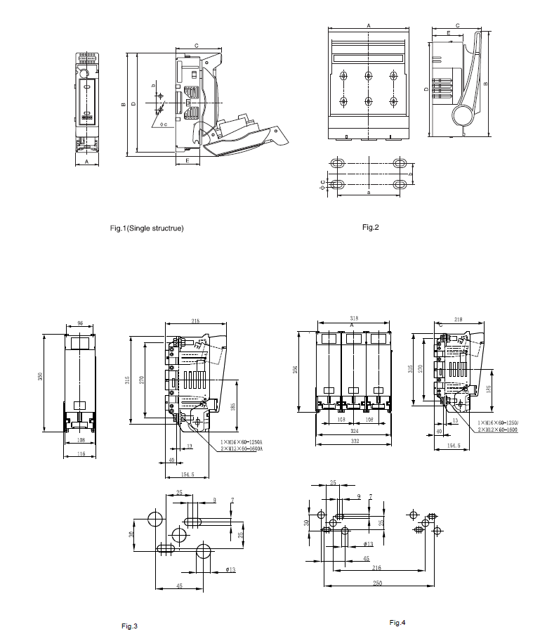 额定电压:800VAC,电流等级:160A/250A/400A/630A/1250A/1600A