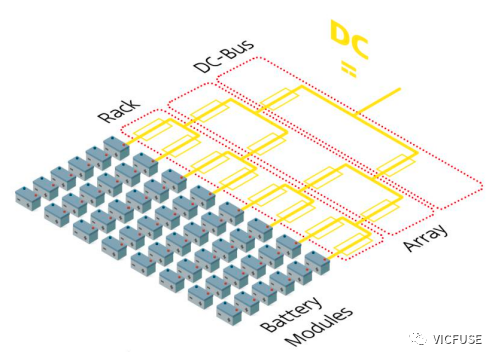 确定了电池组架构(RACK)的熔断器电压后,电池组并组(ARRAY)及主主回路(DC BUS)的熔断器额定电压也就容易得出了。