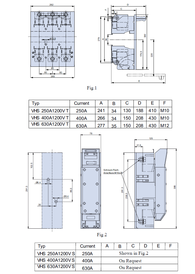 额定电压:1200VAC/1000VDC,电流等级:250A/400A/630A,符合TUV,CE认证。