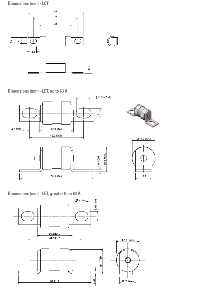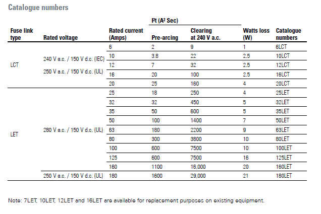 • LET 280 V a.c. / 150 V d.c. (UL, 25 A to 160 A)