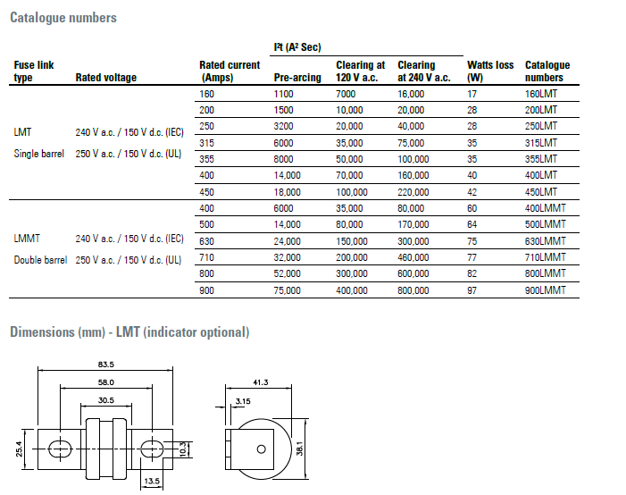 分断能力: 200 kA RMS Sym., 40 kA at 150 V d.c. (IEC)